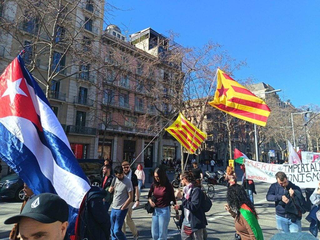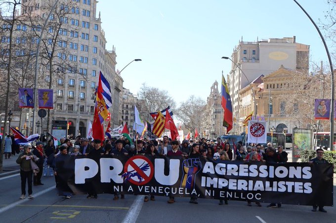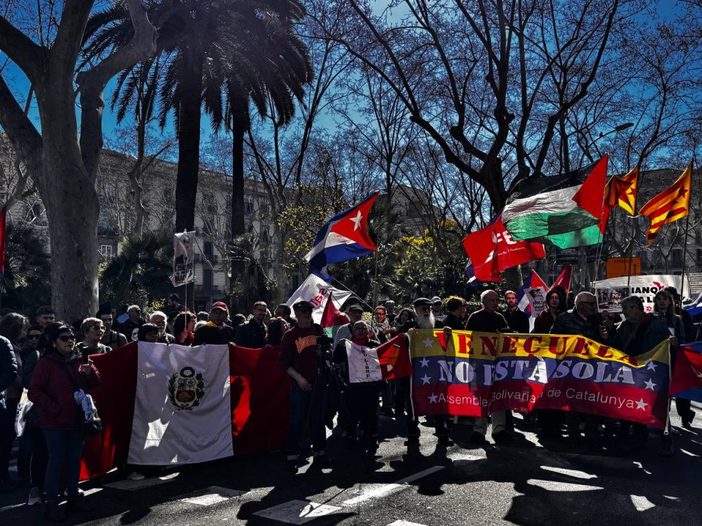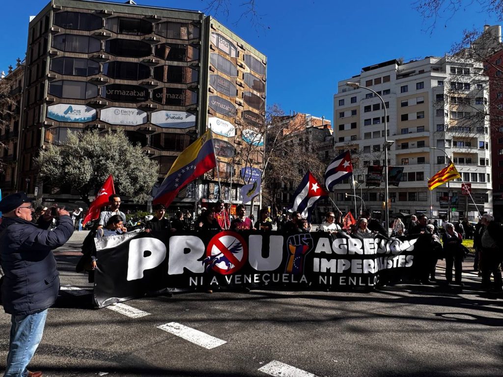 Los participantes recorrieron las calles de la ciudad en un ambiente combativo y solidario hasta llegar al Consulado General de Venezuela en Barcelona, donde el cónsul general, Carlos Azpúrua, agradeció la muestra de apoyo del pueblo catalán y destacó la importancia de la solidaridad internacional en el actual contexto.