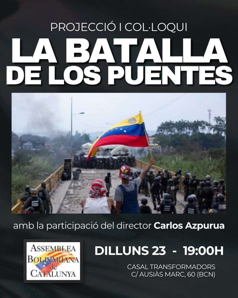 En el séptimo aniversario de la Batalla de los Puentes, este lunes 23 de febrero, el Casal Transformadors de Barcelona, España, se convirtió en escenario de una noche de cine y solidaridad organizada por la Asamblea Bolivariana de Cataluña.